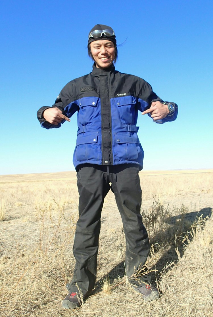 それでいて肝心なタフさもバッチリだ。しっかりと走行風をブロックしてくれて、風の染み込みは感じない。モンゴルにて道路の割れ目にタイヤをとられ走行中に転倒し、肘と膝で道路にスライディングしたが穴は空かなかった。そして驚くべきはその防水性能で、カッパを着なくて平気なぐらい雨をブロックしてくれる。日本を出る前、自宅から出港地の鳥取まで走った道中は雨が多く、前が見えなくなる程の豪雨にも遭ったが、ジャケットの下の服は濡れなかった。