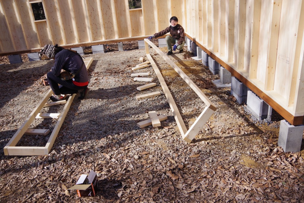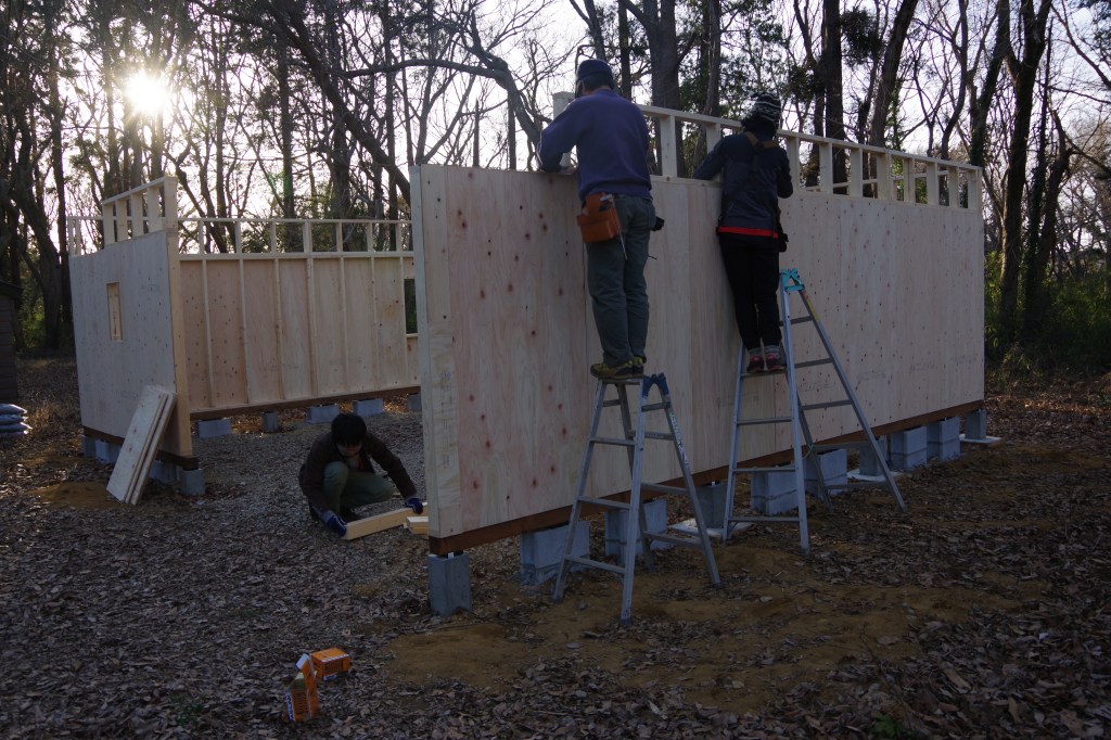 2月4日で基礎を完成させ、翌週の10-11日助っ人も呼んで泊まり込みで作業をし、壁を作りました。