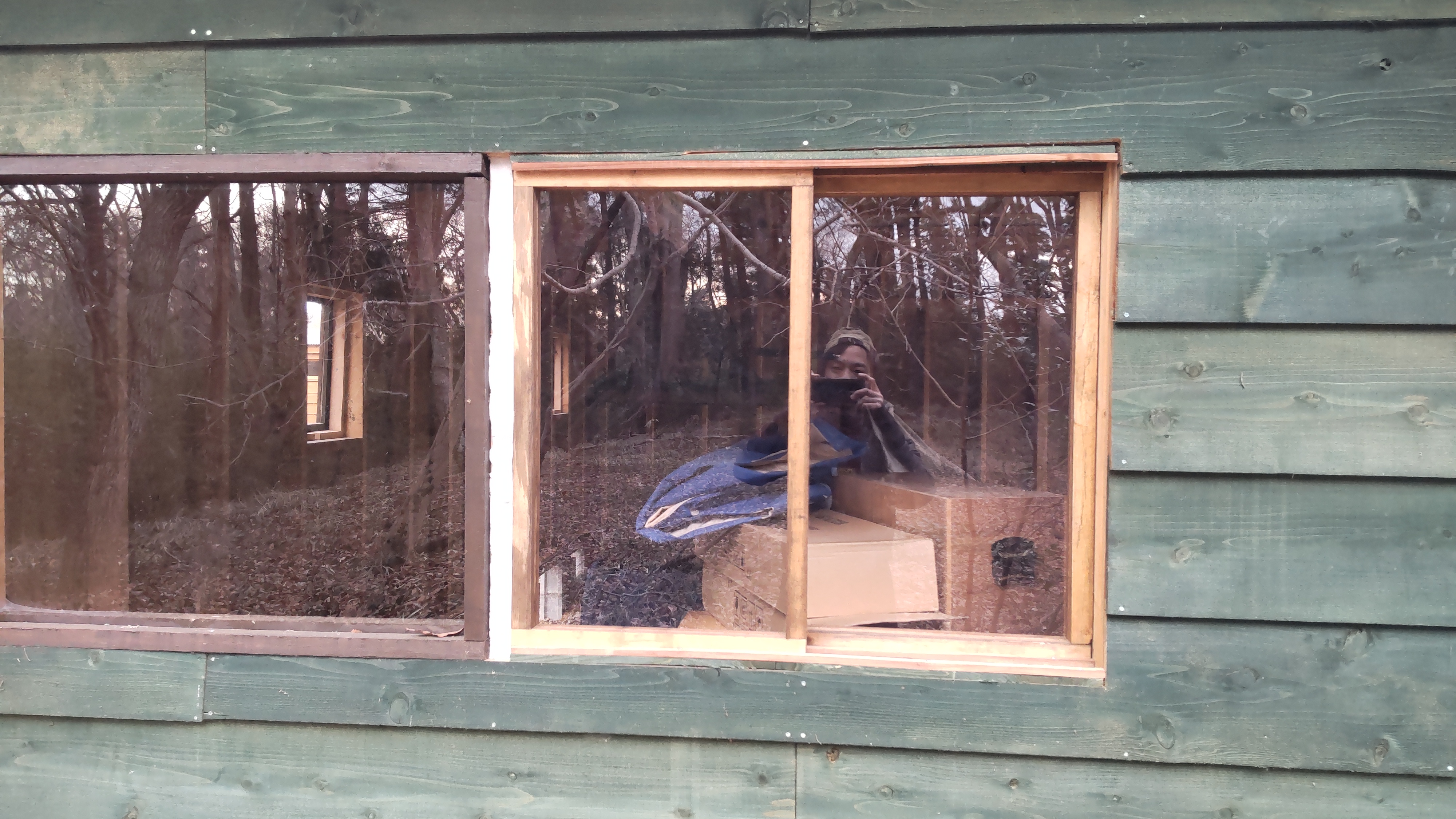 昨日1/17(月)は、四つ目の窓(写真右のもの、横スライドで開閉可)が完成。