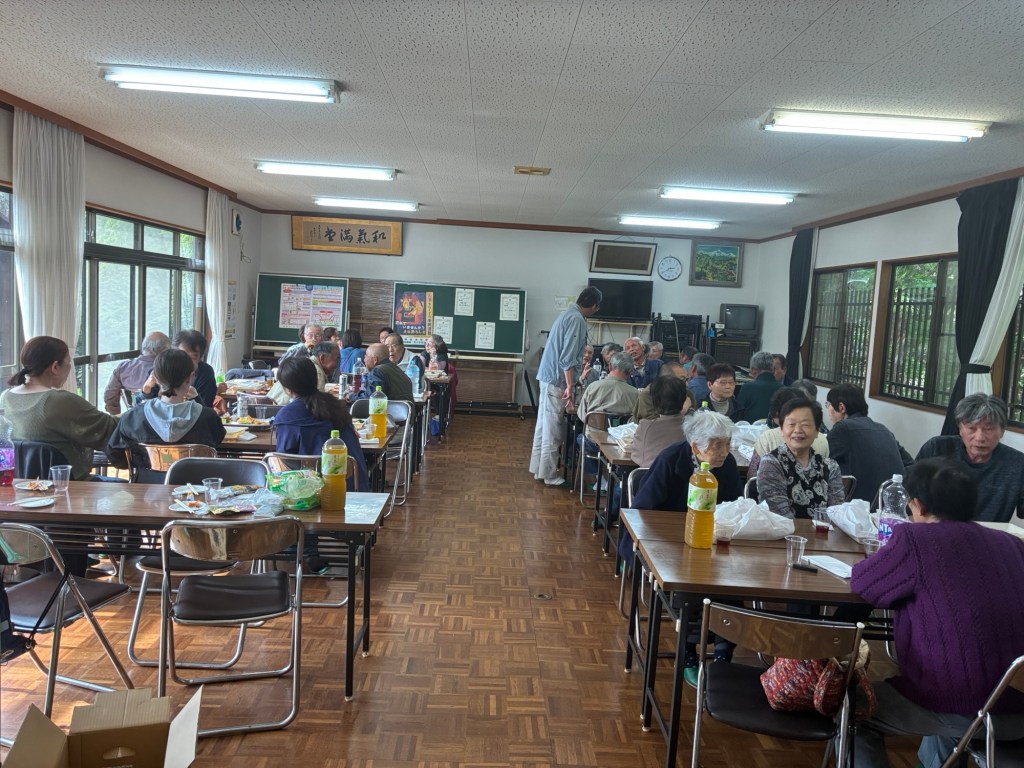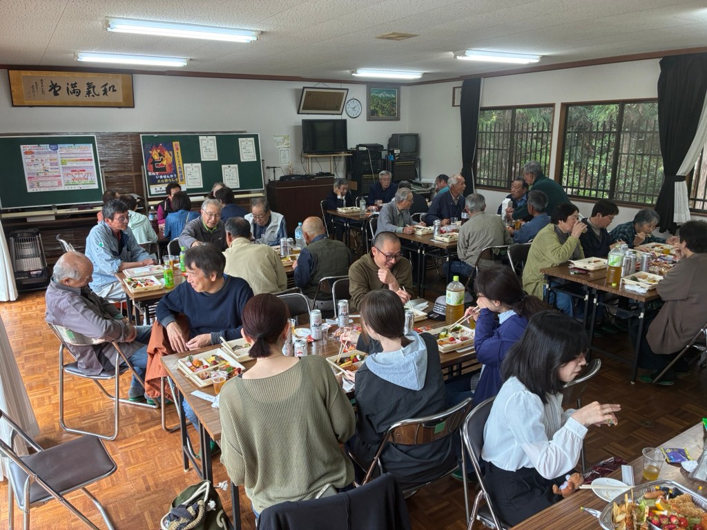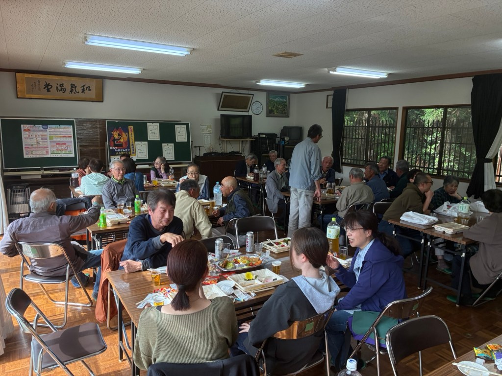 4/29(水)初めて、中条地区全体の花見会に参加できた。桜はほぼ散り、外は肌寒いため地区センターの室内で催された。