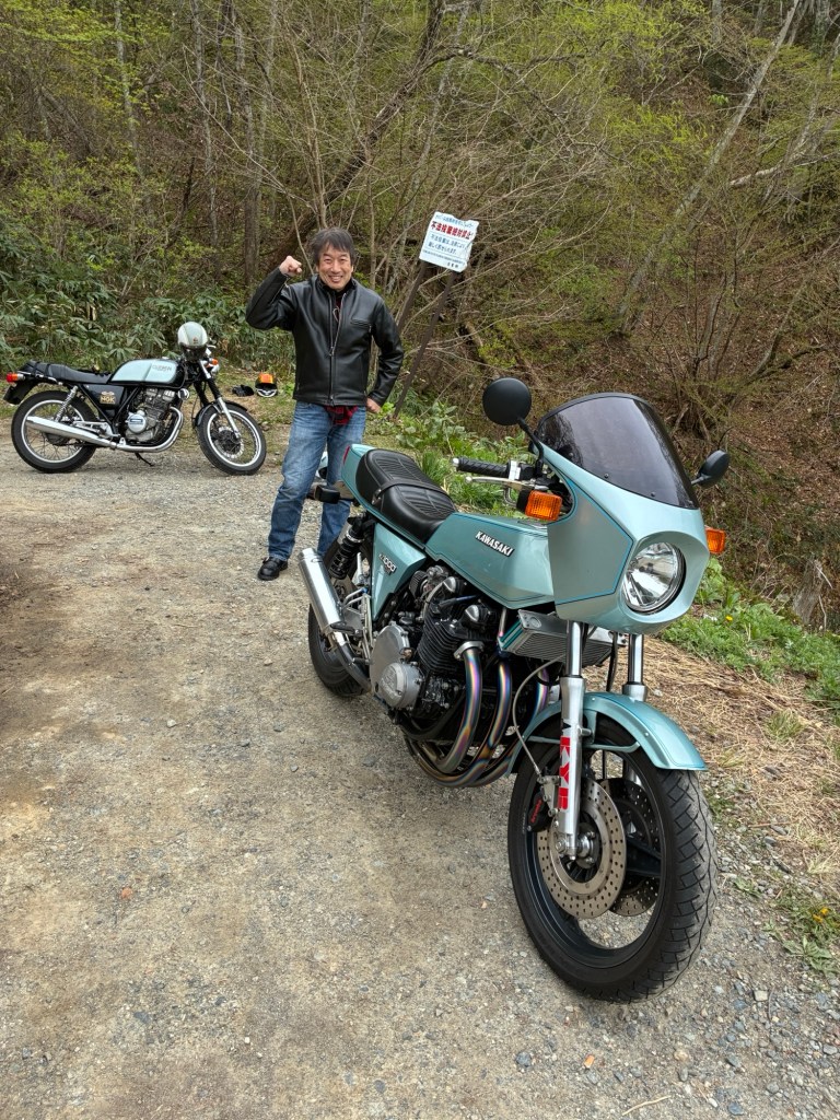 また、そこで久々に会った笠井さんと、翌日にツーリング。笠井さんのZ1-Rは、俺がトライアンフを買いその後バイトしたタイムトンネルで27年前に買ったもので、縁がある。