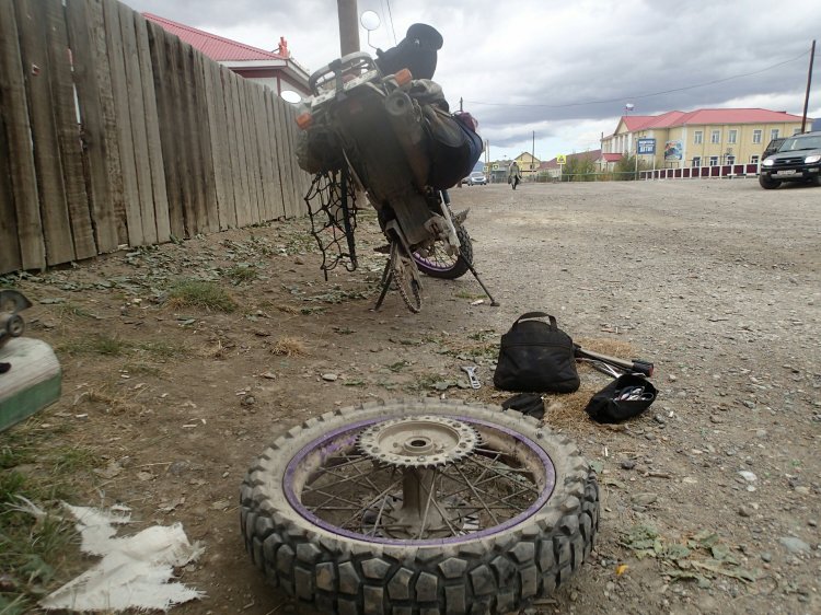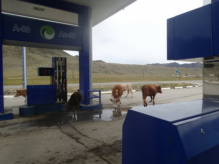 ここのマラットというオジサン(写真右)が超いい人で、廃オイルバットを貸してくれて、捨ててくれて、オイルフィルターを洗う灯油をくれた。お礼に!と余っていたロシアのお金を渡そうとすると、「いらないよ!だって今日はこんなに天気がいいんだから!アッラーの神様ありがとう!(ジェスチャーからの推測)」と言い、受け取らない。ならばせめてタバコを!→「いらないよ!2008年からやめたんだ!」ならばロシアのイチャモンポリスに渡さず残った賄賂用ウォッカを!→「いらないよ!!私ムスリム、ムスリム!!」と、彼は心優しき本物のイスラム教徒だった。 マラットに感謝しつつ、この日はSemeyという町に泊まった。
