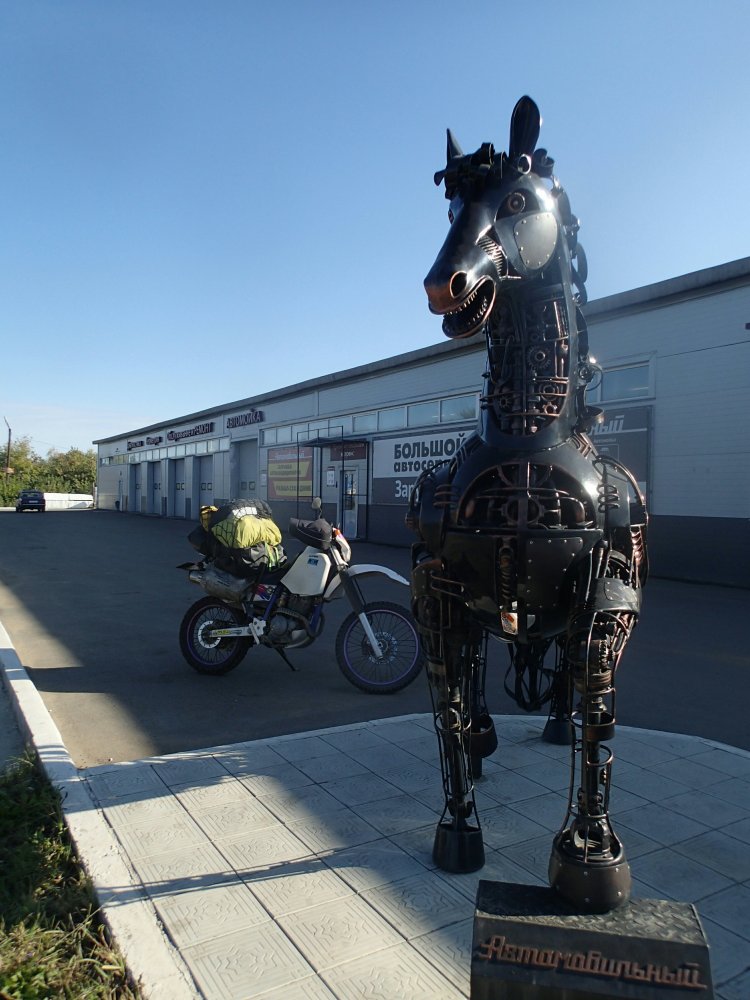 途中のGroznyで見かけた、ロシアでは珍しいチョッパースタイル(国がバカでかいからみな早く進みたいのか、スポーツバイクが多い)のバイカー。ボクサーツインエンジンでBMWのタンクだったから、おおっビーエムのチョッパーはさらにレアだ!と思って話しかけたら、URALとのこと。URALのチョッパーでも珍しいけど。