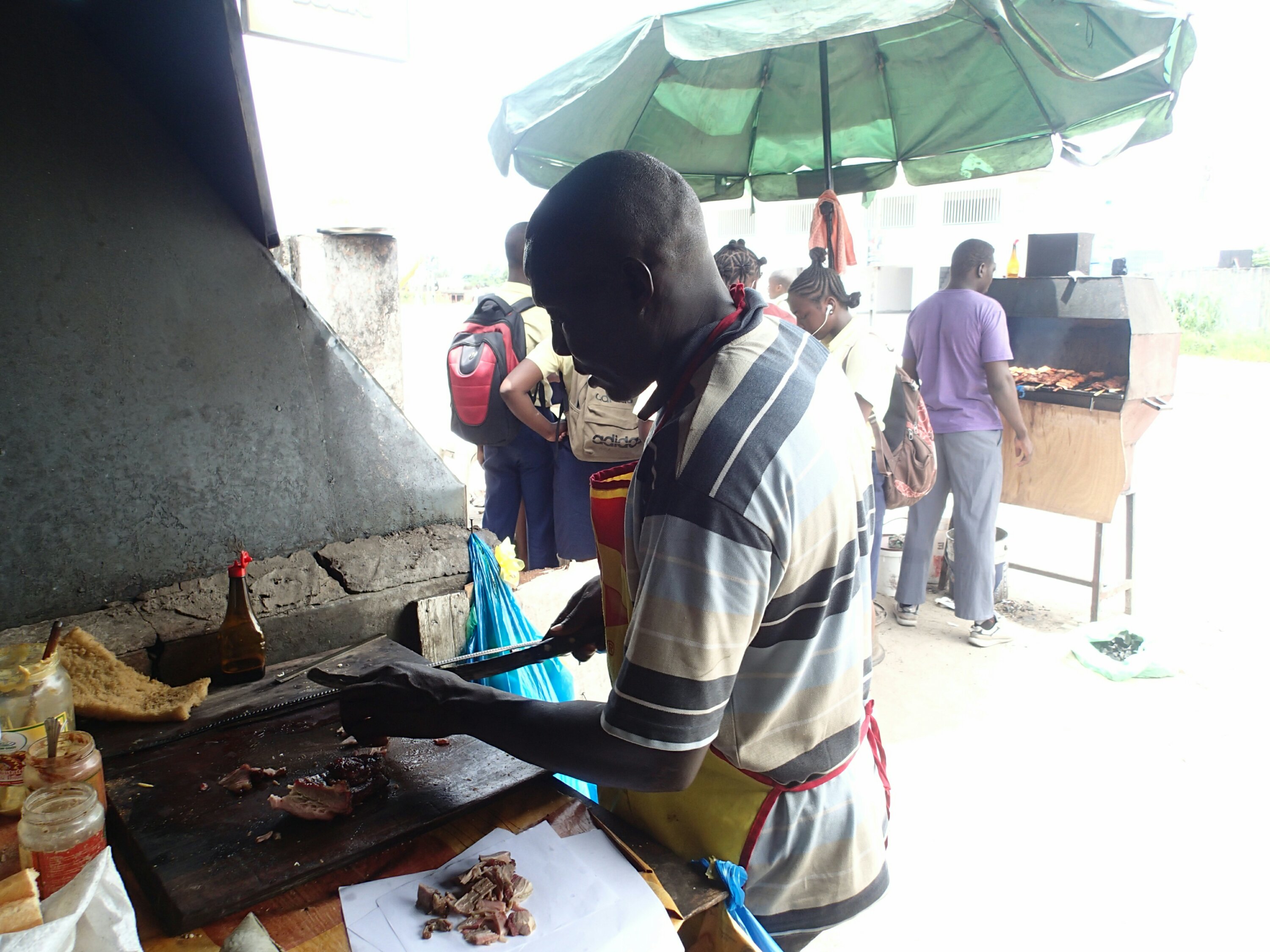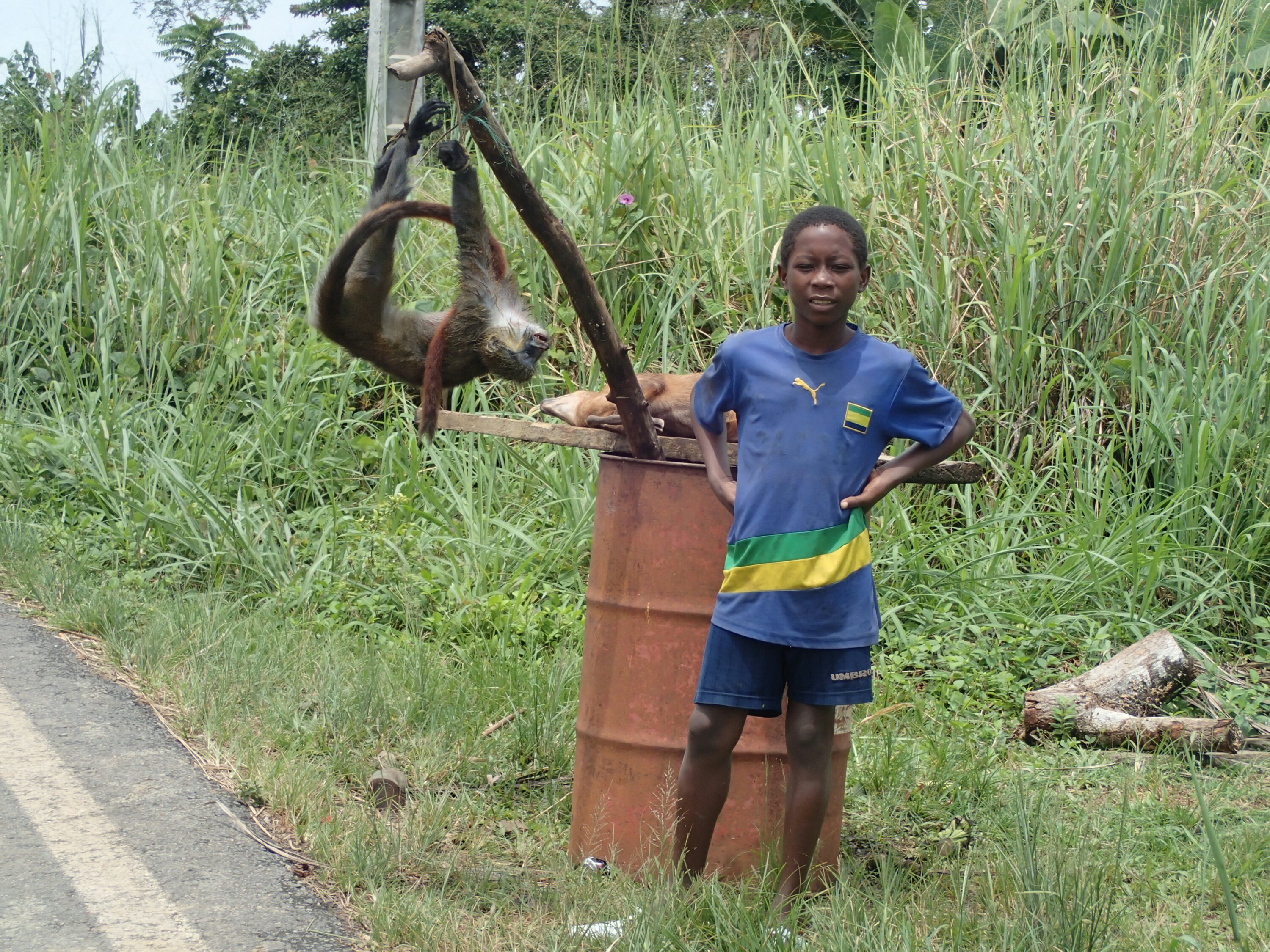②名物、路上で売ってるBushmeat(野生肉、ジビエ)