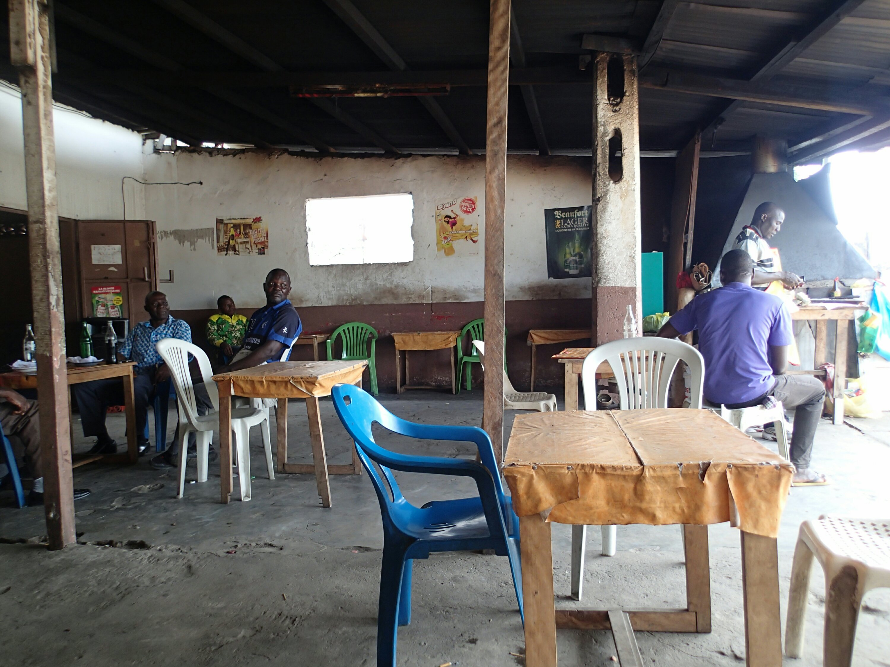 ●その1、よく行ったBAR。料理はその辺の屋台で買ってきて持ち込むのがガボンスタイル。この店は目の前の屋台が安ウマで居心地もよく、ほぼ毎日昼に通って常連さんになった。
