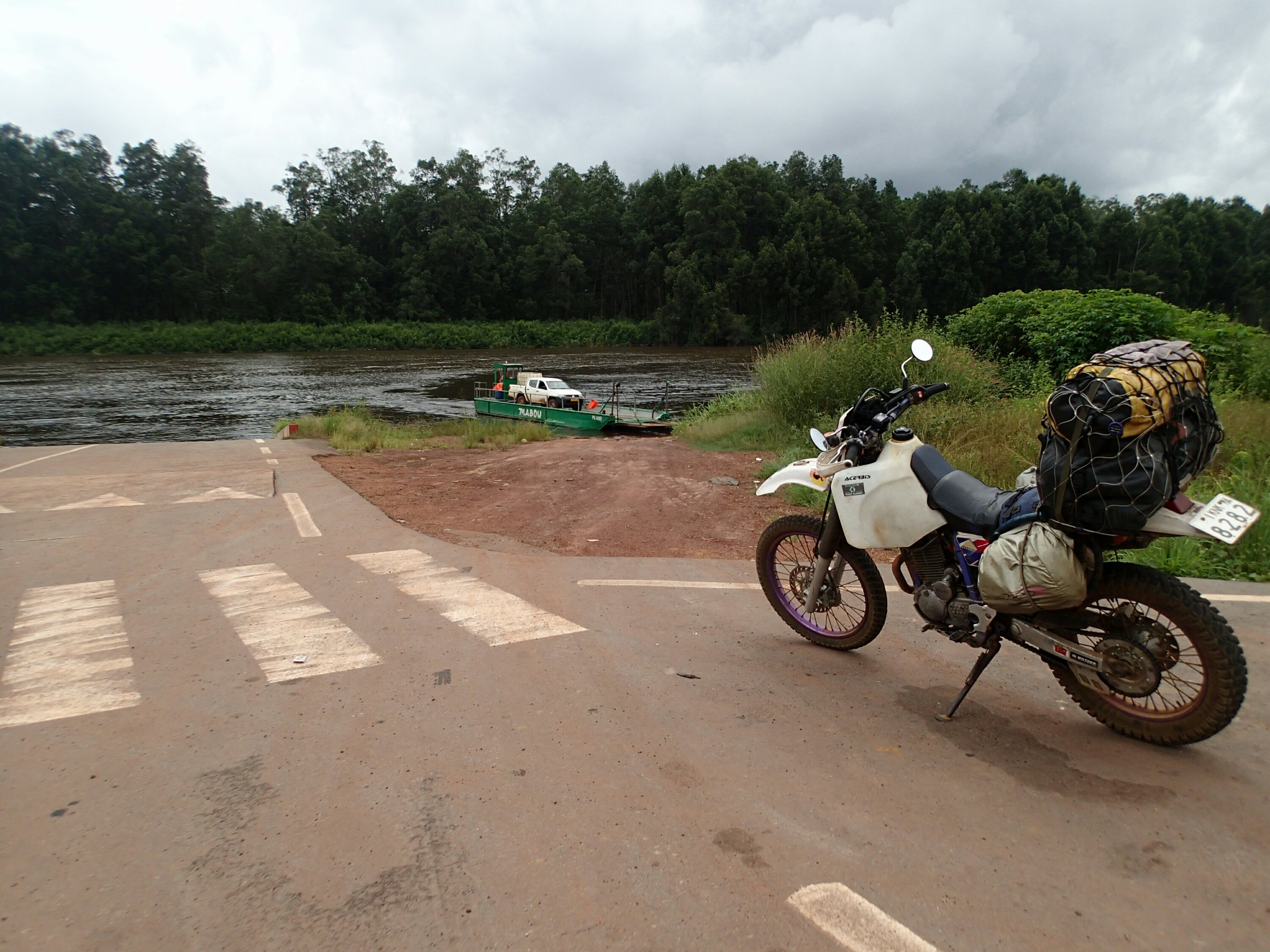 このトラック野郎達に会えたからこそ、俺はコンゴに入国することができた、といっても過言ではないかもしれない。5人の中でリーダーのレニンは英語が話せて、俺にすごく協力的だったから、国境通過まで一緒に進んでサポートしてくれたのだ。日が落ちて真っ暗、雷が鳴るどしゃ降り、ガタガタドロドロの悪路。俺のヘッドライトじゃ前がよく見えない中で、後ろからのトラックの強力なライトが照らしてくれたおかげで、路面が見えた。俺はここに突っ込むのか!?と躊躇するほど大きくて深そうな泥水溜まりもあったが、はまっても助けてもらえる心強さが背中を押してくれて、突破できた。