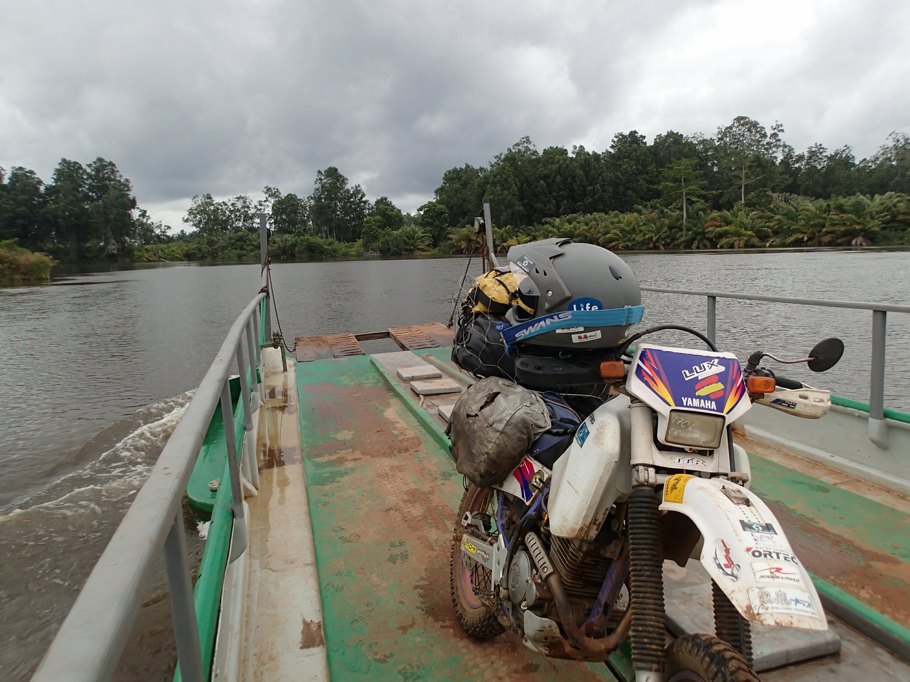 対岸からやってきた船。この車が降りた後、今度は俺がバイクを乗っけて対岸へと渡る。