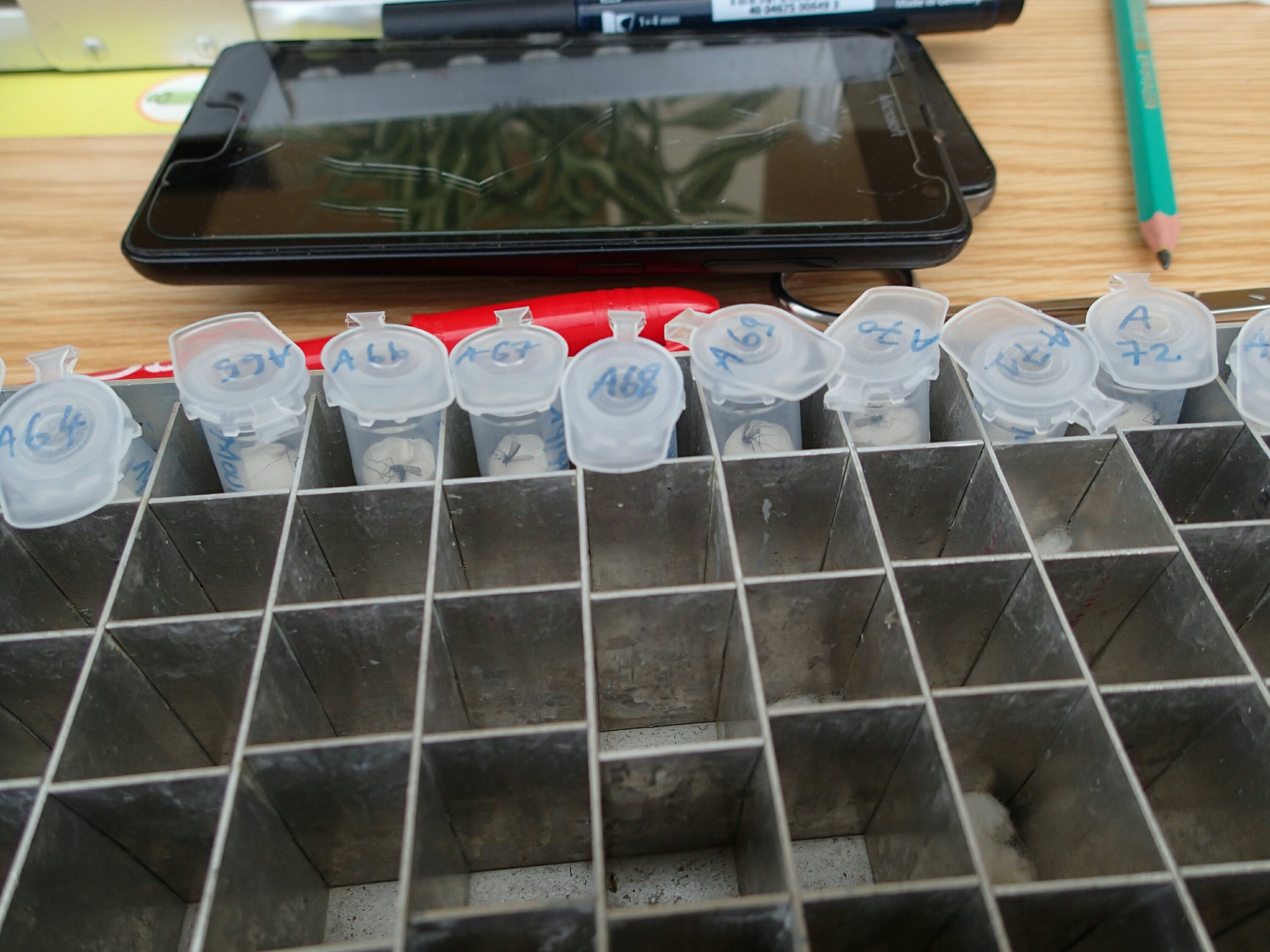 宿の駐車場にて、PrinceとPatricという二人組に出会った。二人は医療関係の仕事でMayumbaに来ていて、大量の蚊を一匹一匹小さなガラス管に入れ仕分ける作業をしていた。