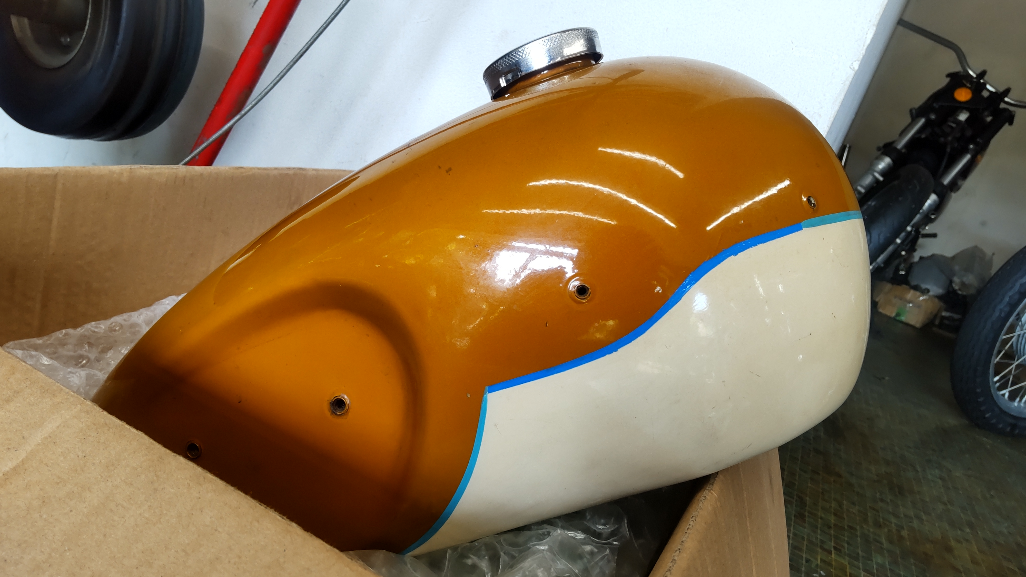 オーダーしていたオリジナルシートも製作完了して受け取り、外装と保安部品を装着すればいよいよ、道を走れるようになる。この先まだもう少し続く完全復活への工程は、これまでにくらべればはるかに気楽で楽しい道のりとなる!