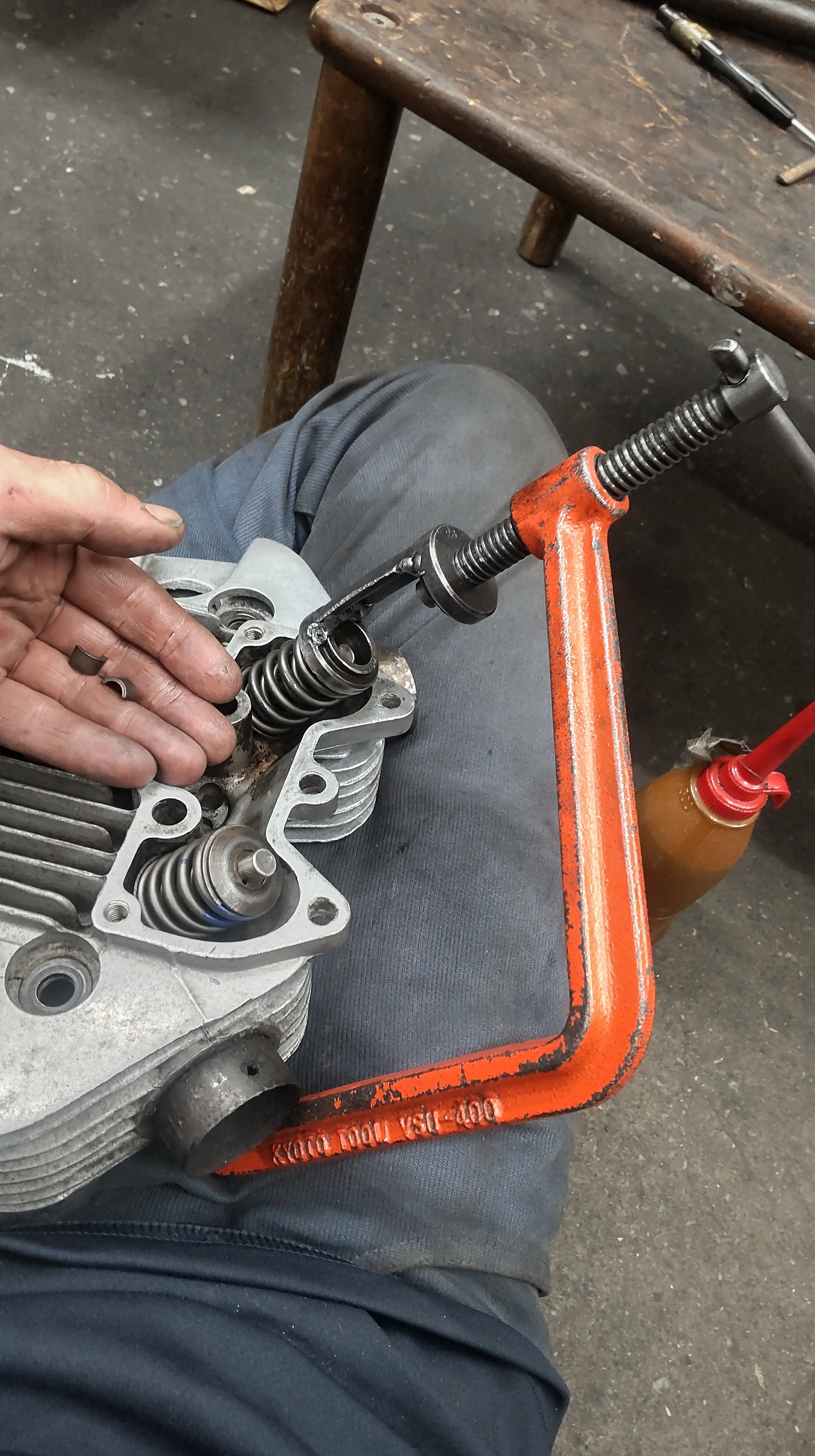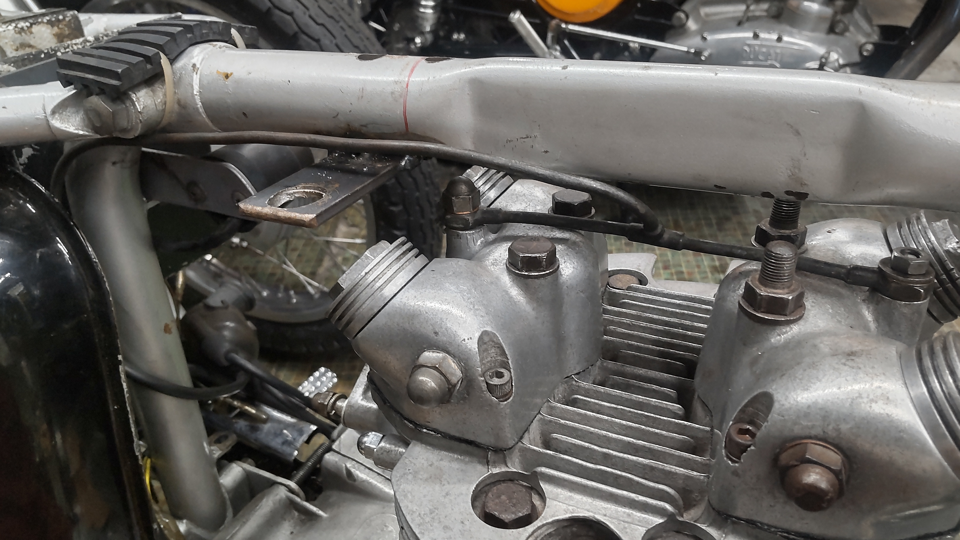 まずはオイルラインのチェックから。オイルタンクにエンジンオイルを入れて、オイルポンプがちゃんと機能してオイルを送り、戻してくれるか確認するため、ひたすらにキックを踏みまくる!